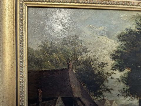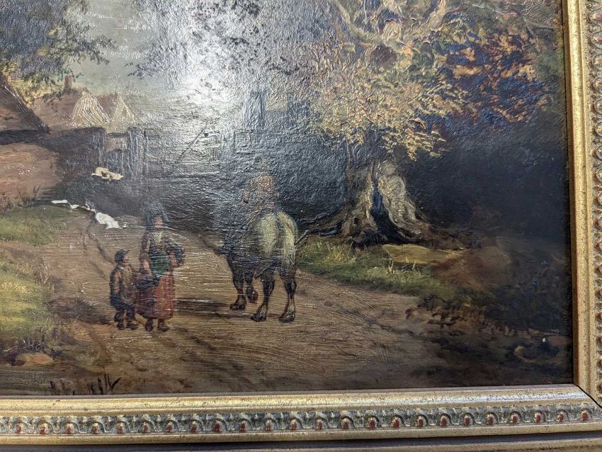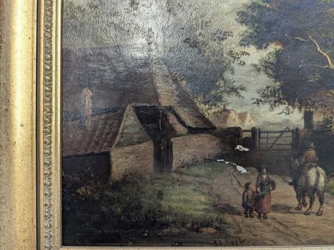 English School, 19th Century/Figures and a Horse/by a farmstead/oil on panel, 28cm x 34cm