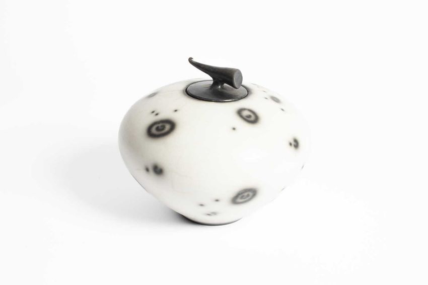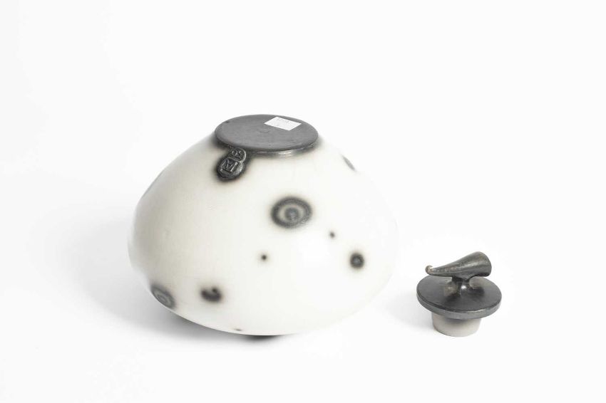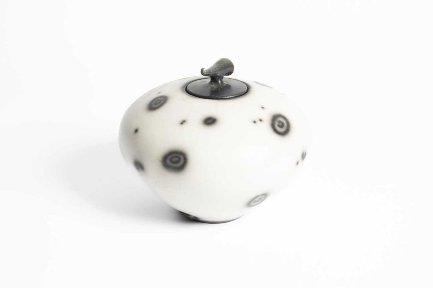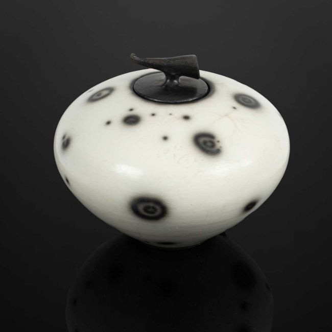 Tim Andrews (born 1960) a raku lidded vessel/curling pot, impressed seal marks, 18cm x 21cm