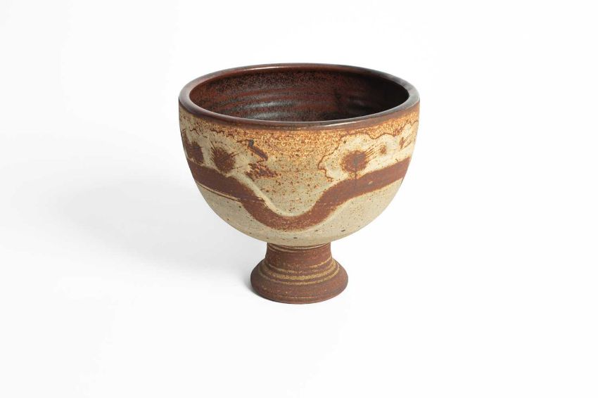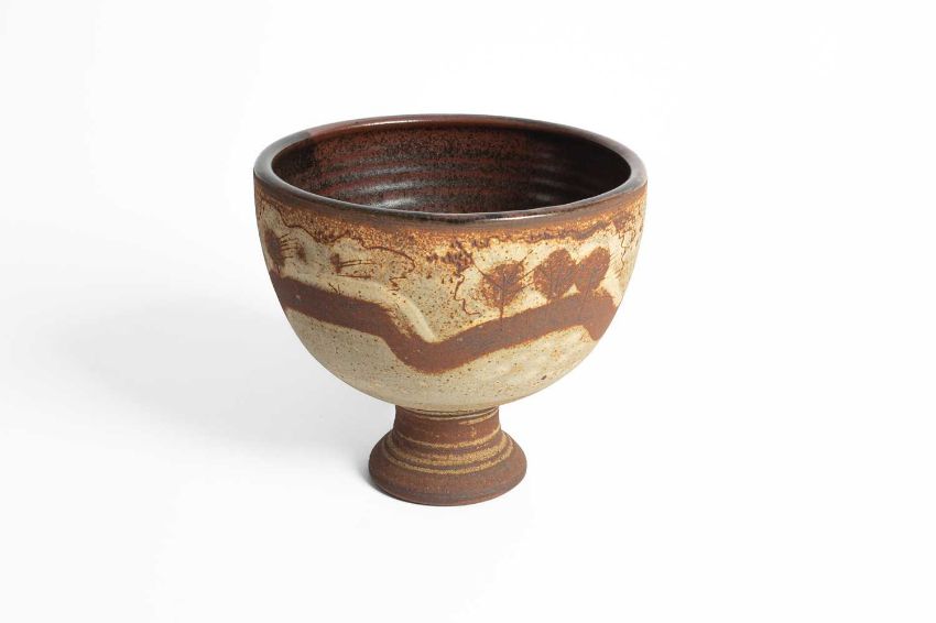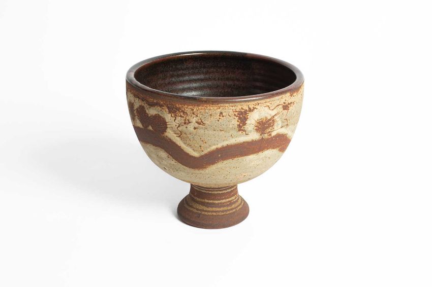 Michael Casson (1925-2003) a footed stoneware bowl with brushwork decoration, painted mark to base, 19cm x 21cm