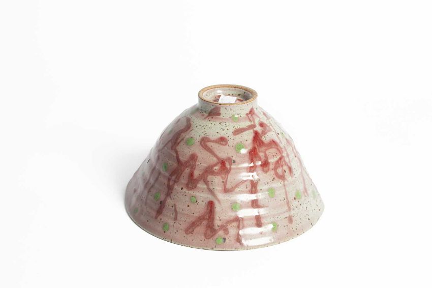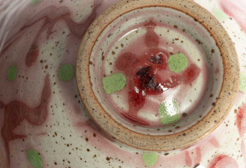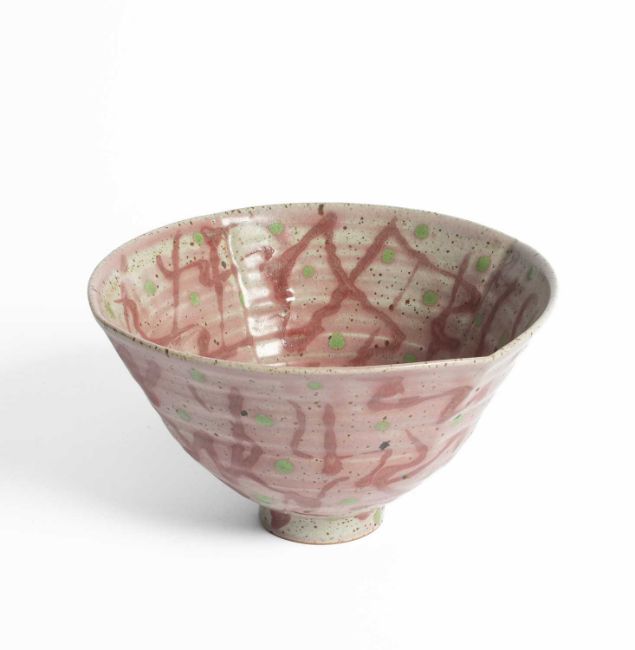 Janice Tchalenko (1942-2018) a stoneware bowl decorated in pink and green glazes, 21cm diameter