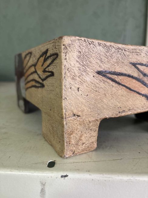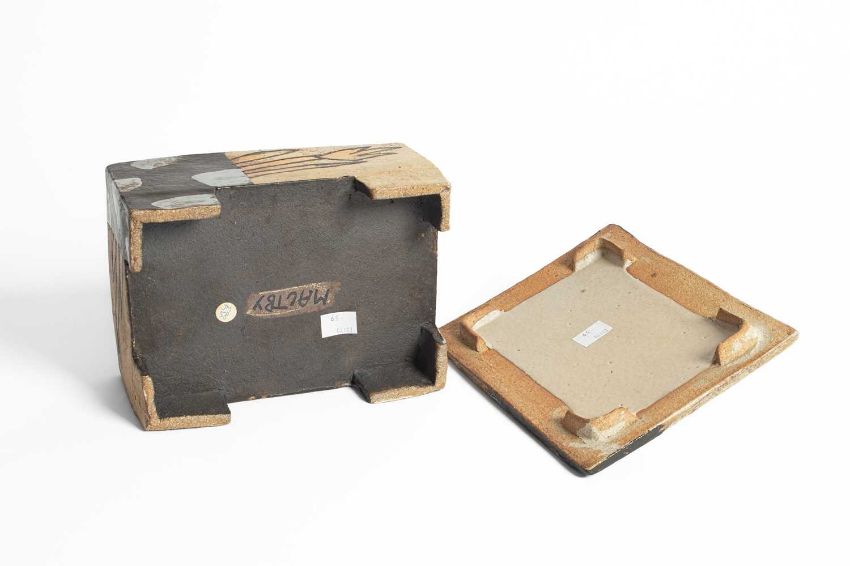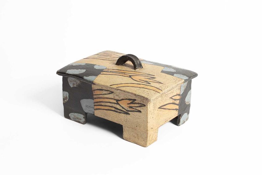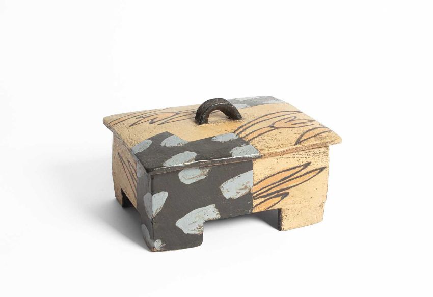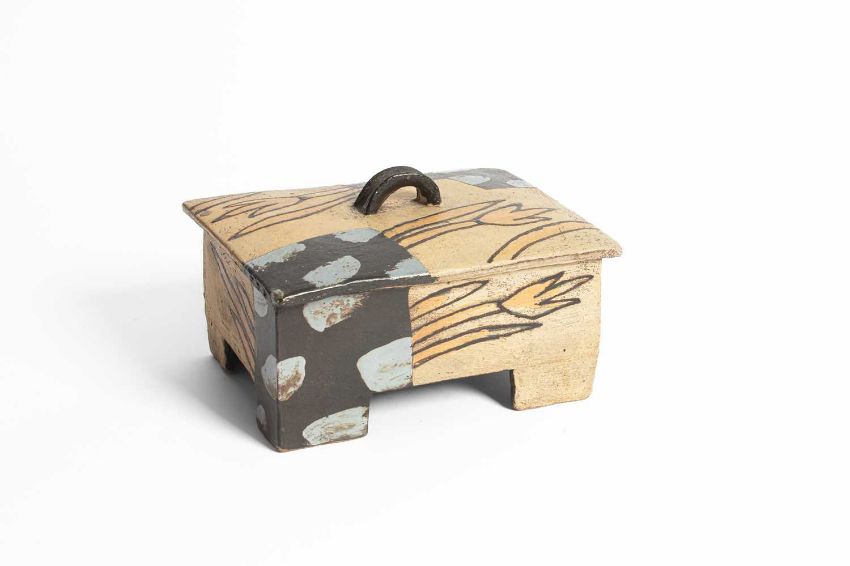 John Maltby (1936-2020) a rectangular footed box and cover, the lid with finial, decorated stylised flowers, signed to base, 22cm x 10cm