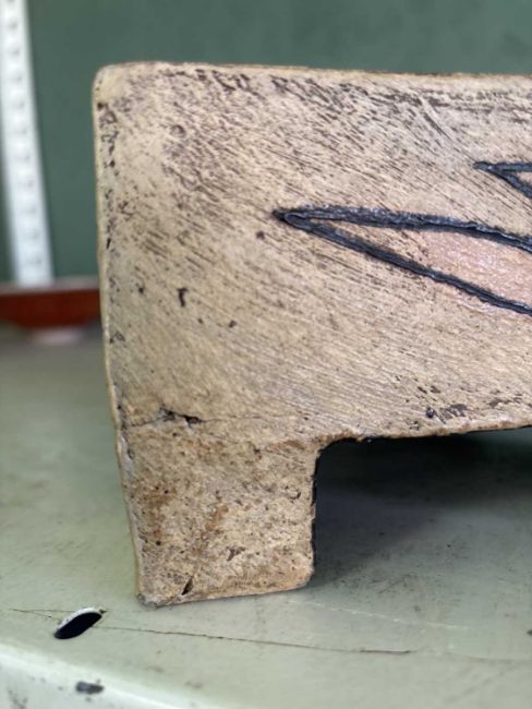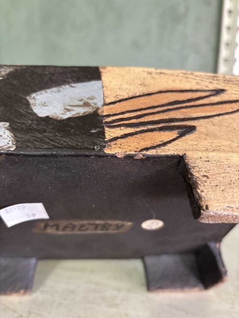 Two very small glaze chips to the underside edge of the base. Small firing crack to the top one one leg whre it joins the body. Overall very good.