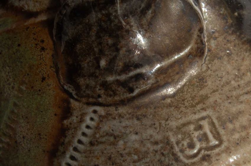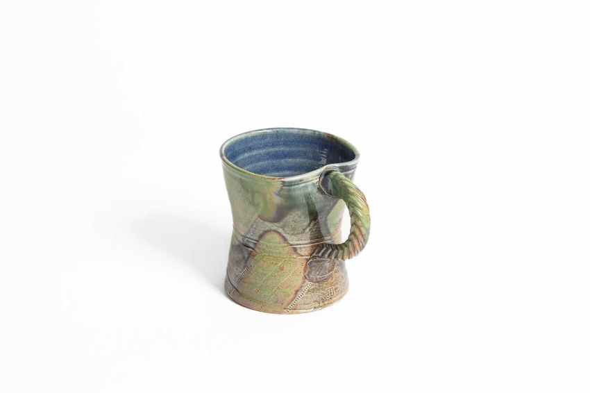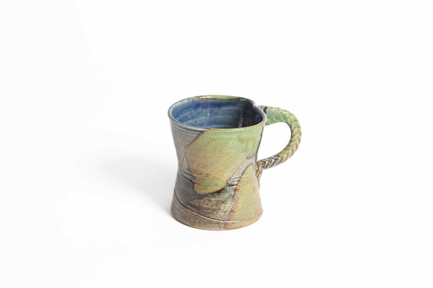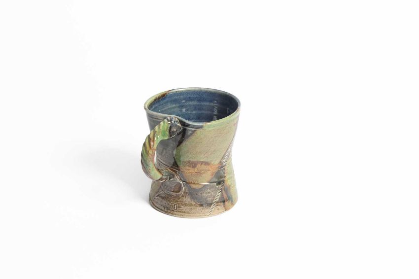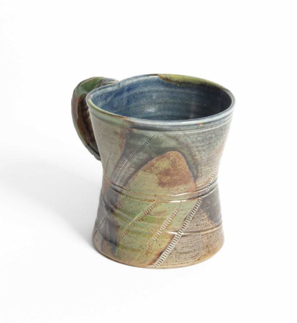 Jane Hamlyn MBE (born 1940) a green and brown glazed mug, impressed maker's mark, 10cm high